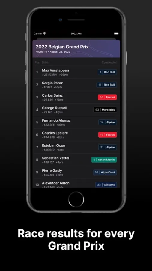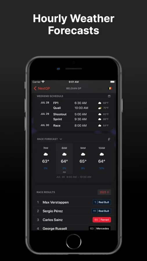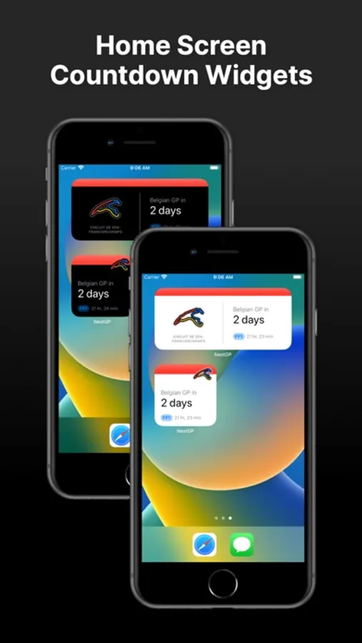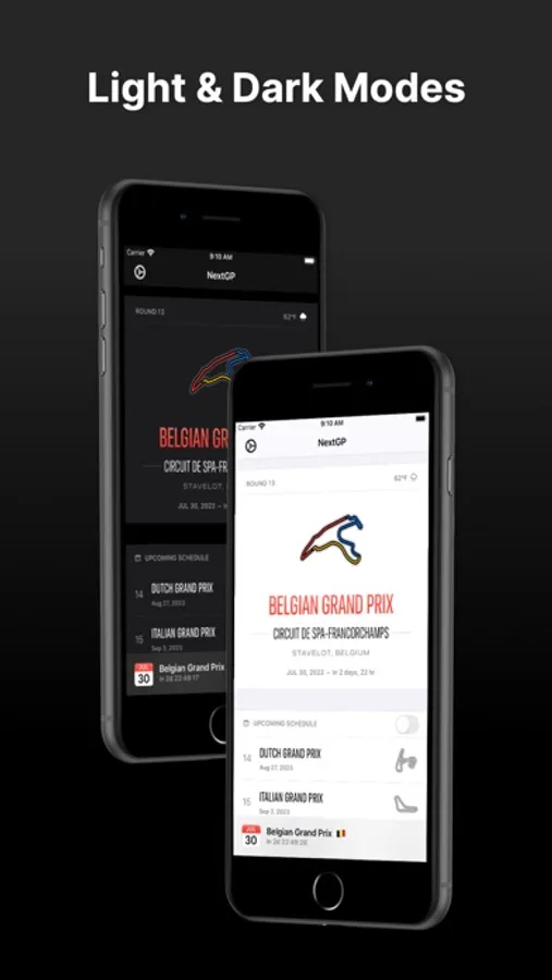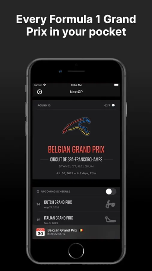- Lock Screen & Home Screen Widgets showing details and countdown information to the Next Grand Prix