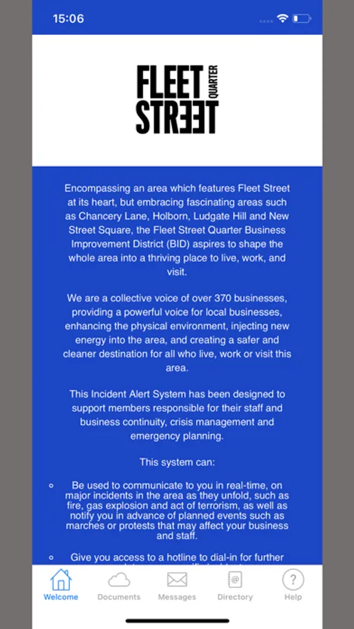 - Be used to communicate to you in real-time, on major incidents in the area as they unfold, such as fire, gas explosion and act of terrorism, as well as notify you in advance of planned events such as marches or protests that may affect your business and staff.