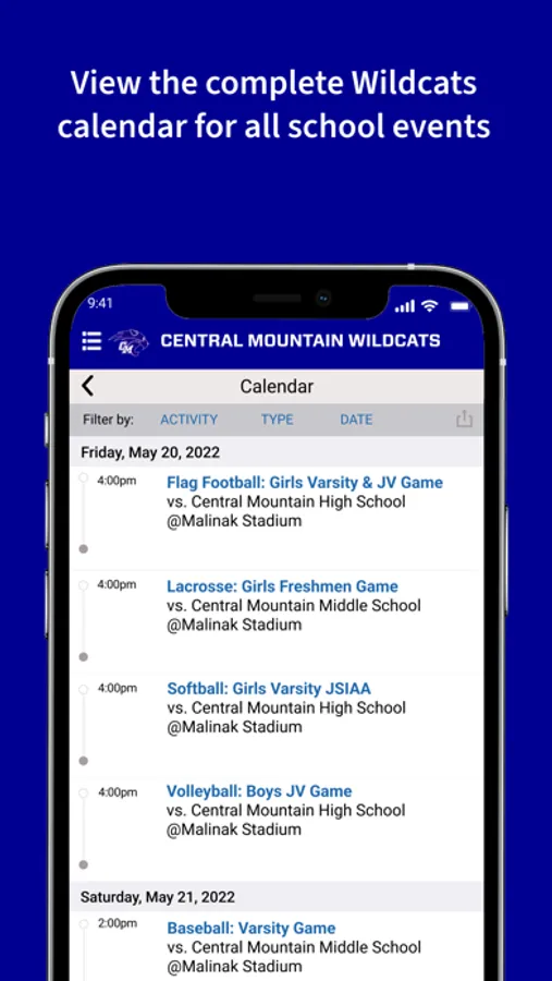 The Central Mountain Athletics App is your source for all Wildcat activities. Schedules, Rosters, Scores, Team Info, Articles Photpo galleries, and Upcoming Events are all available through our Wildcats app.