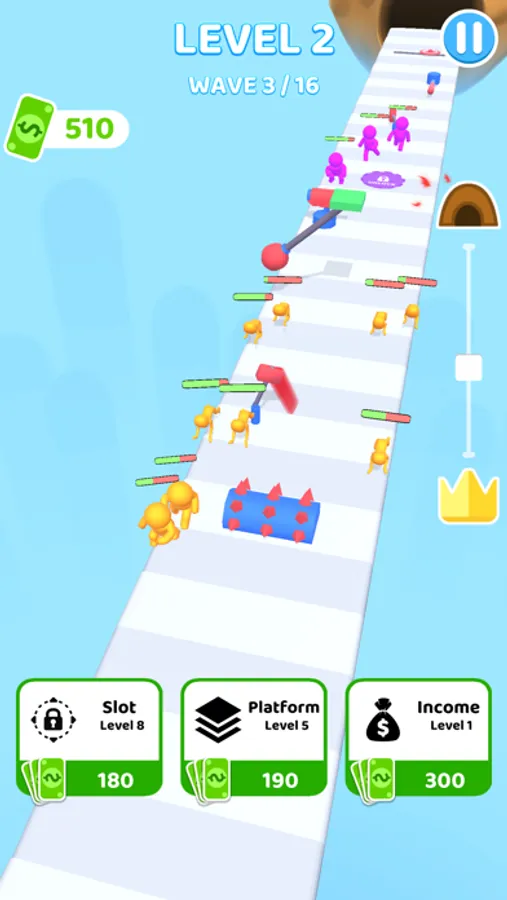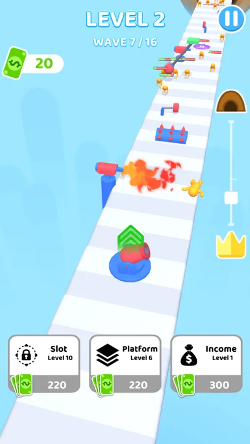 Resist in front of enemies before they reach to finish line! Use various obstacles to prevent the enemies from reaching the finish line!