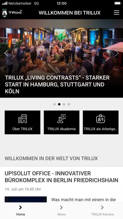 Die kostenlose TRIXI App von TRILUX bietet den Nutzern spannende Einblicke in den Lichtmarkt. Neben News und Blogbeiträgen zu neuen Technologien, Trends, Produkten und Projekten bündelt die App die wichtigsten Informationen zu TRILUX als Unternehmen sowie aktuelle Stellenangebote. Die TRIXI App fungiert zudem als Schnittstelle zur TRILUX Akademie und der digitalen Sales- und Service-Plattform TRILUX ONE.