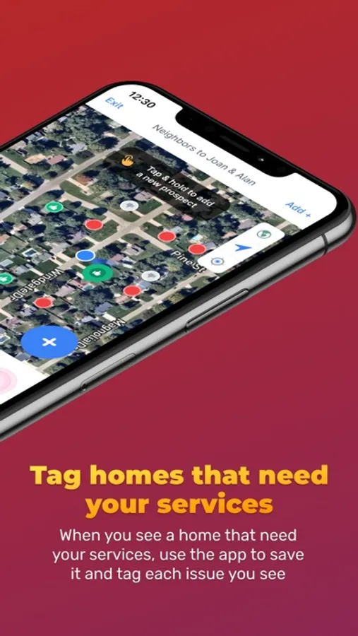 When you see a home that needs your services, firmly press to add it to the map, and then tag it with relevant symptoms or issues.