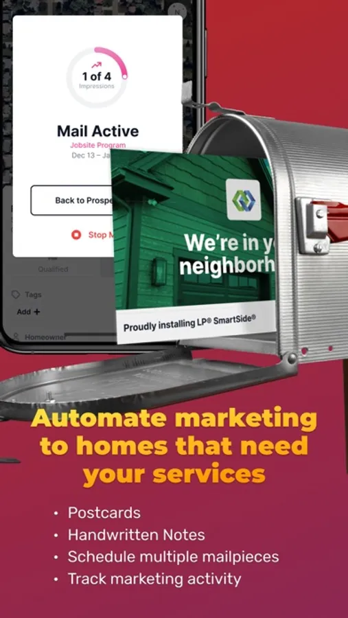 When you see a house that needs your services, tag it in the Lead Scout app and then trigger direct mail right to their mailbox. It's that easy!