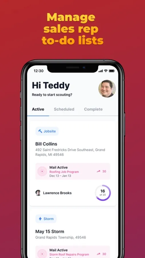 With the Lead Scout mobile app, contractor sales teams are empowered to:
