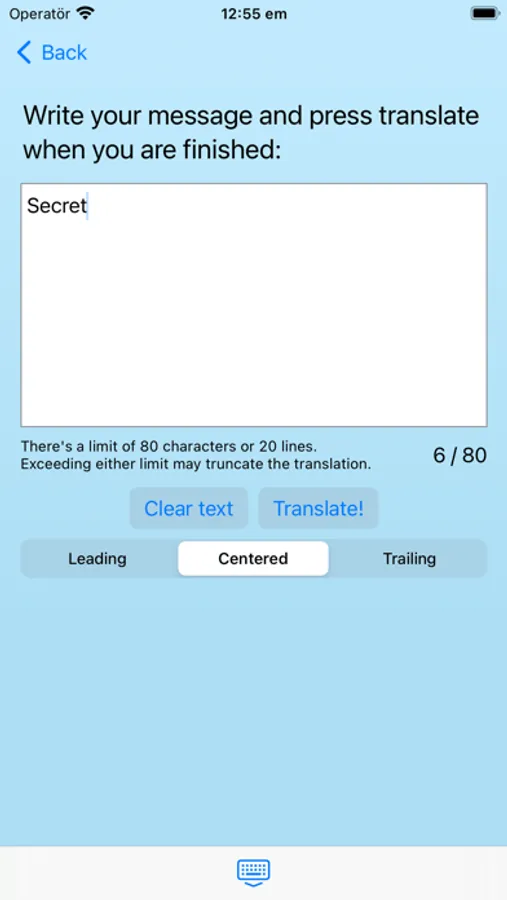- Save or share your Alienese messages with the world as high-resolution images directly from the app.