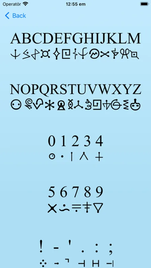 - An alphabet overview and Alienese keyboard for deciphering messages in Alienese.
