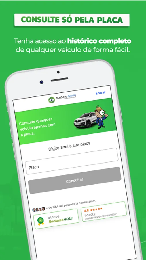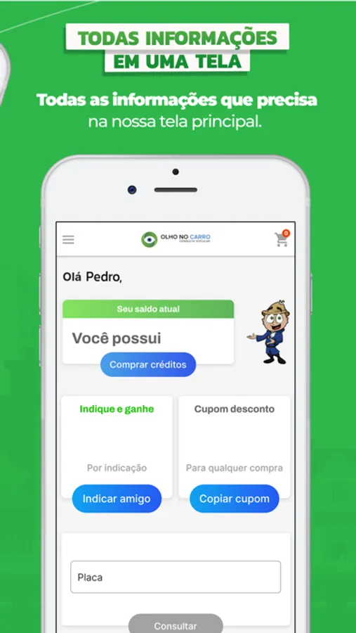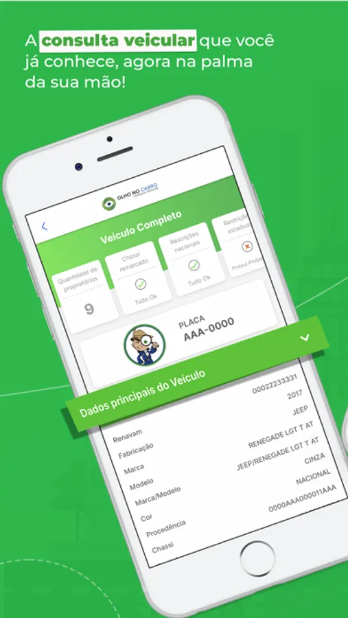 No app da Olho no Carro, você pode fazer consultas básicas grátis, algumas consultas específicas (como a consulta Renavam) e a consulta completa da situação do veículo, que te dá muito mais segurança na hora de negociar. Tudo isso em um ambiente super fácil de usar, com informações confiáveis e que são fáceis de entender.
