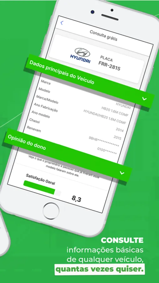 1 - Nós temos consultas básicas que são grátis e ilimitadas - Você poderá consultar informações básicas de qualquer veículo, quantas vezes quiser;