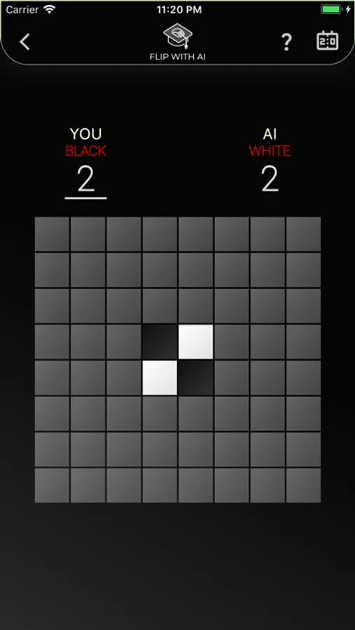 7 When it is no longer possible for either player to move, the game is over. Disks are counted and the player with the majority of their colour showing is the winner.
