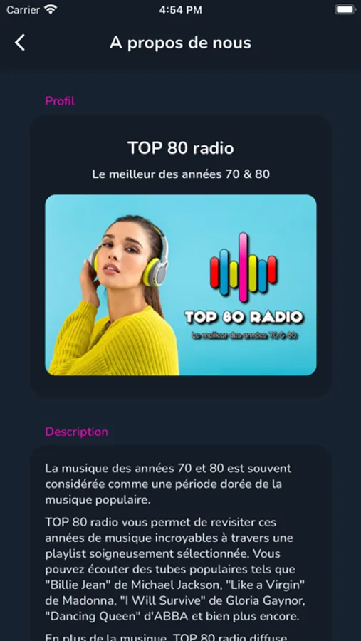 Si vous êtes fan de musique des années 70 et 80. Top 80 Radio est une excellente station de radio en ligne à découvrir pour vous replonger dans ces décennies musicales légendaires.
