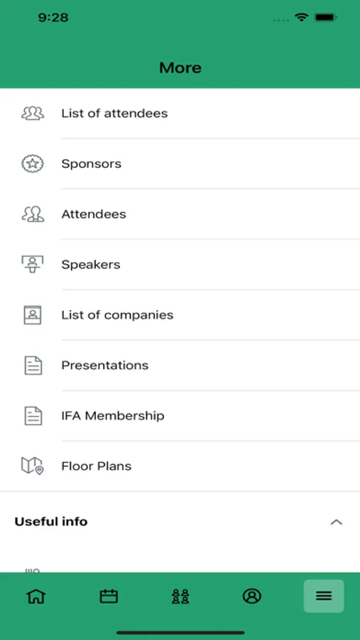 IFA Events is the official mobile App for IFA conferences Schedule. Engage. Connect. Network. This mobile app allows you to: - View schedules, explore sessions, and find networking events - Create your own personal schedule for easy conference attendance - Access location and speaker information Features of the App: - Agenda - view the full agenda and related information (session time, room number, speaker info, etc) - Attendees - see who’s at the event, and connect with them on the app (direct messaging) - Exhibitors - find exhibitors and sponsors - Corporate meeting rooms - access list of hospitality suite numbers and locations