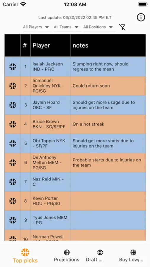 The ultimate guide for fantasy managers. Daily pickups advice, full projections, buy low/sell high candidates and much more.