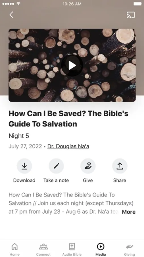 This app will help you stay connected with the day-to-day life of our church. With this app you can: watch or listen to past messages; read the Bible & devotionals, stay up to date with push notifications; share your favorite messages via Twitter, Facebook, or email; and download messages for offline listening. Whether you fellowship with us in person or online we hope you are blessed!