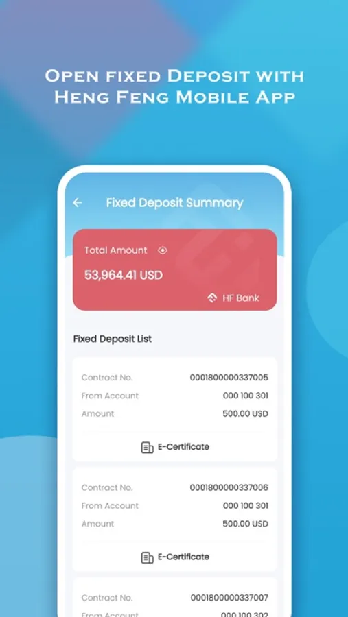 Heng Feng Mobile application is a technology-based service that enables the bank to offer to its customers the banking services on the Mobile Phone. It facilitates customers to obtain account information, account inquiries, and make fund transfers through mobile application.