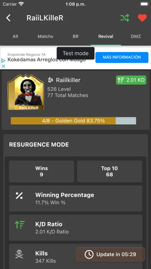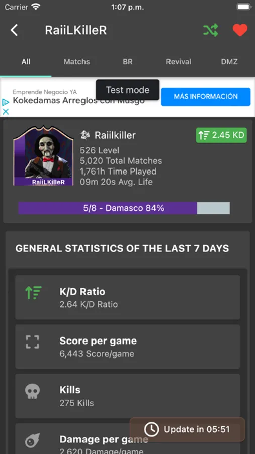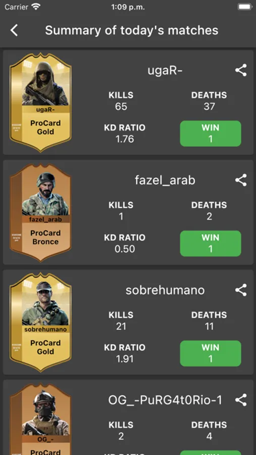 See all the GENERAL statistics of all game modes and share it with your friends!