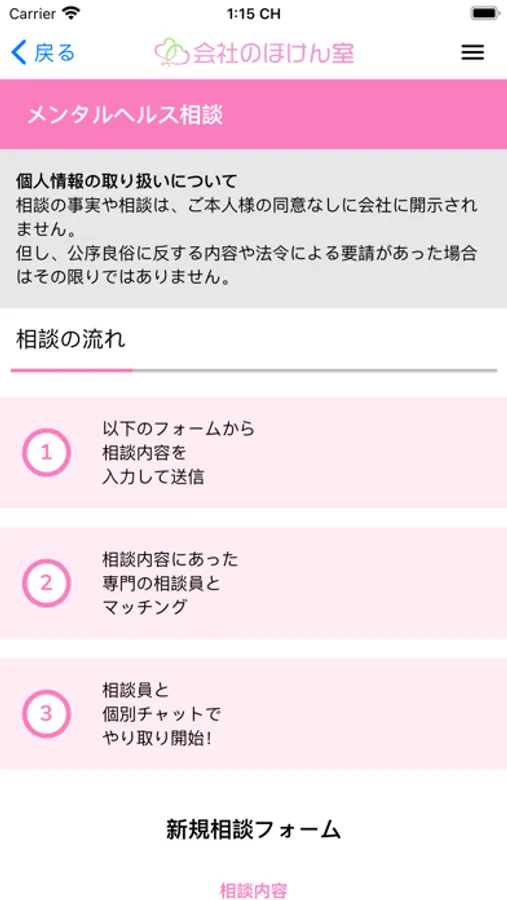 会社のほけん室では相談窓口を細分化し、お悩みに対して適した知識を持った専門相談員へお繋ぎすることで従業員様のあらゆるお悩みを解決に向けてサポートすることができます。