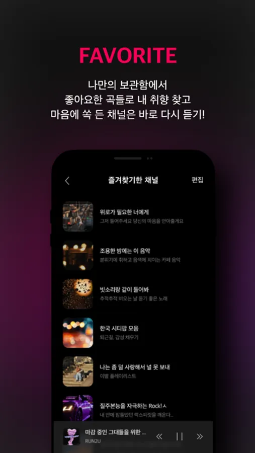 나만의 보관함에서 좋아요한 곡들로 내 취향 찾고, 마음에 쏙 든 채널은 바로 다시 들어보세요!