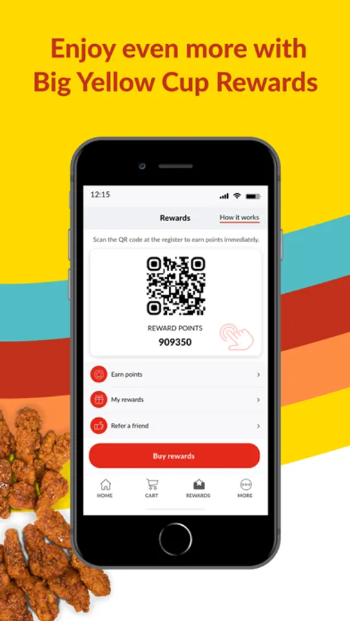 LOYALTY PROGRAM: Big Yellow Cup Club Rewards. Earn 10 points for every dollar you spend. Eat. Earn. Rewards.