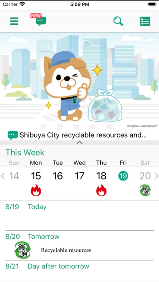Shibuya City has released an app which includes information related to garbage, such as the garbage collection schedule, the procedures for disposing of garbage, precautions to take when disposing of garbage, a garbage sorting reference, and frequently asked questions. You can check the information easily with your smartphone.