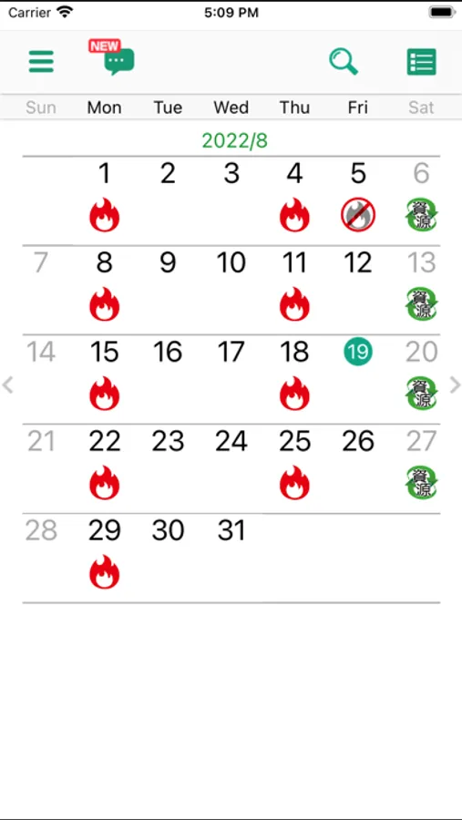 You can check three patterns of the garbage collection schedule on one screen at a glance: “Today and Tomorrow,” “Weekly,” and “Monthly.”