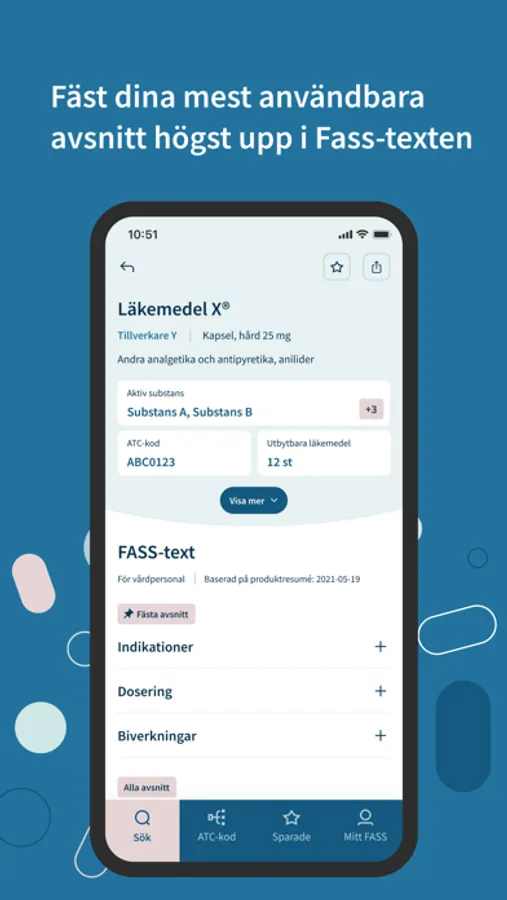• På produktsidan finns utöver Fass-texten även länkar till substans, ATC*-register, utbytbara läkemedel och kontaktinformation till företaget.