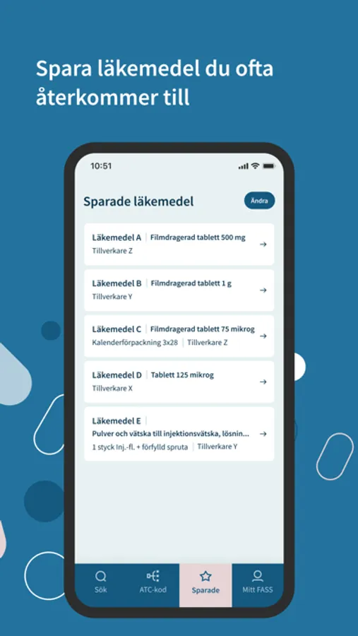 • Du kan söka efter läkemedel genom läkemedelsnamn, substansnamn eller ATC*-kod.
