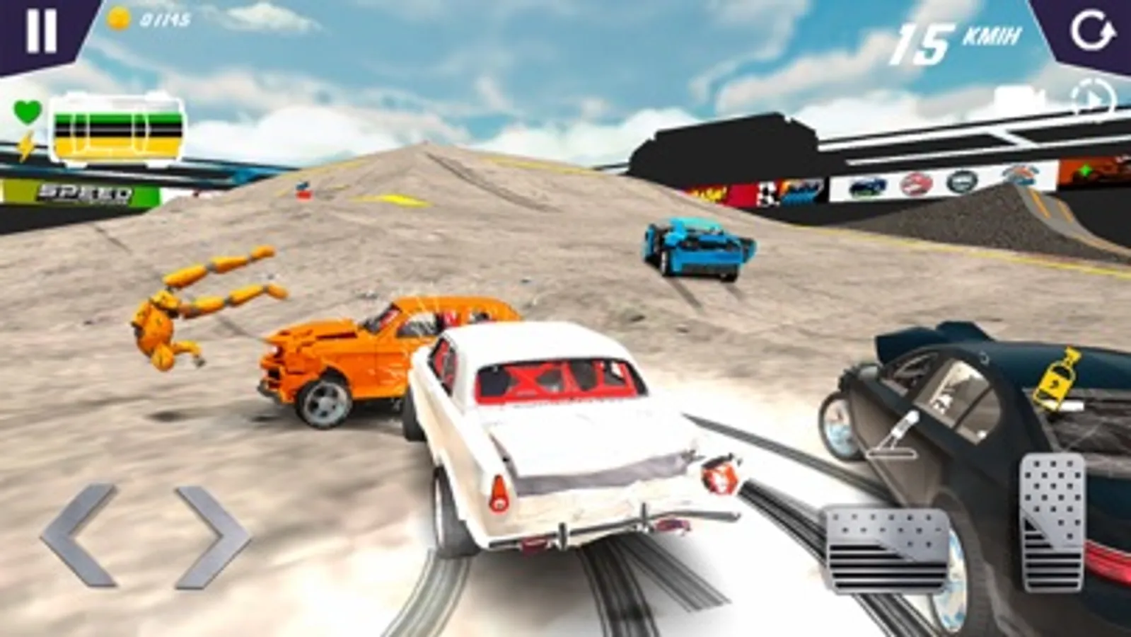 On the car crash test arena, you can try many ways to use the destruction of cars, from jumping off jumps, performing stunts, to crashing cars into various traps and obstacles. You can compete with opponents by using tricks to crash their cars. You will be able to accelerate to top speed and cause high speed crash by causing epic car crash.