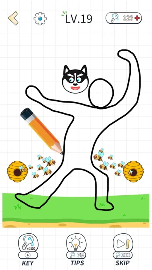 This is a Solve Stickman-like Puzzle. In this game, you need to draw a line to help the cute, stickman to survive. It is a game combined with logical puzzle games and a drawing test.