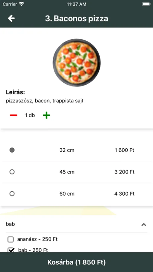 Weboldal: https://pizzabumm.hu/