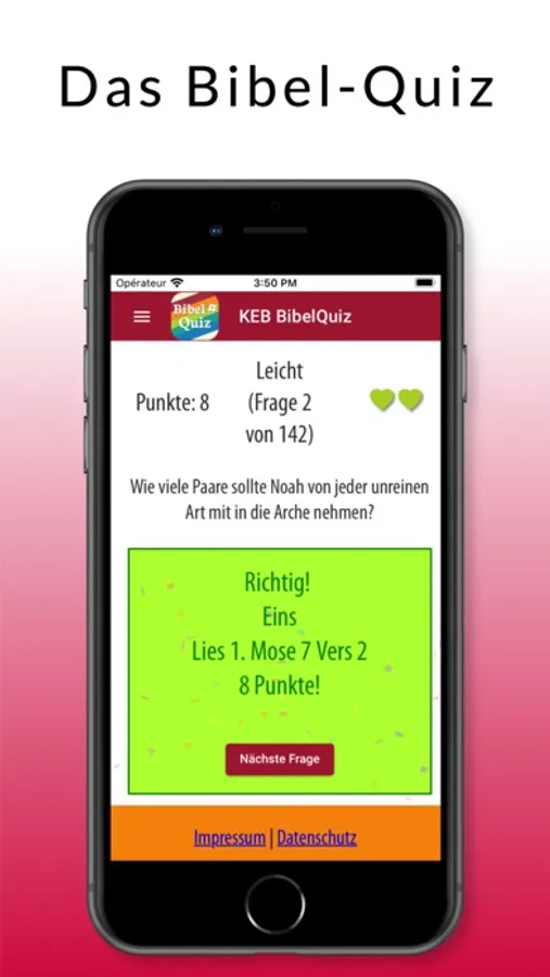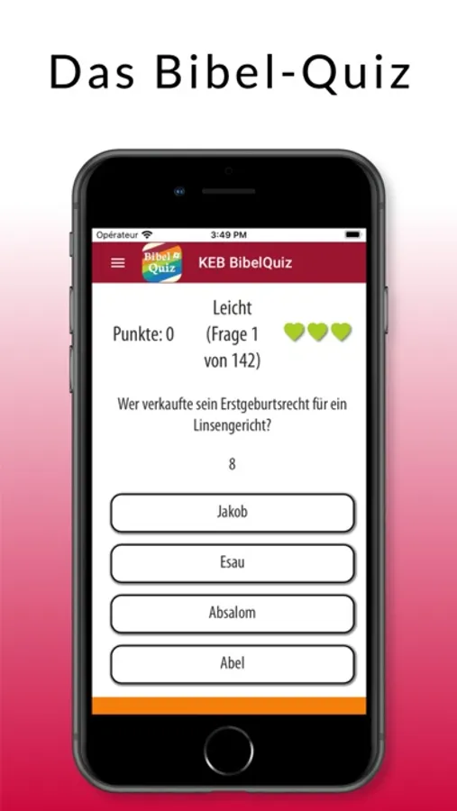 Die "Das Bibel-Quiz“-App möchte auf spielerische Art und Weise Gelegenheit bieten sich mit den Inhalten der Bibel auseinanderzusetzen. Man kann altes Wissen auffrischen und hoffentlich Neues dazulernen.