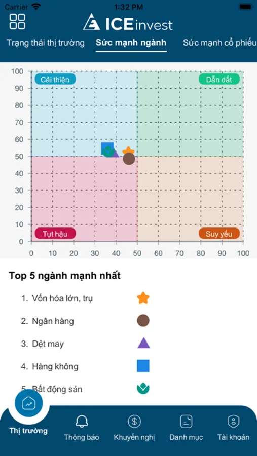 5. Ngoài ra Nhà đầu tư sẽ được cung cấp các thông tin về sức mạnh ngành, so sánh sức mạnh giữa các dòng cổ phiếu, sức mạnh của từng cổ phiếu nắm giữ cập nhập hàng ngày từ đó có chiến lược đầu tư phù hợ