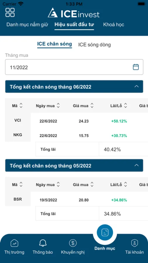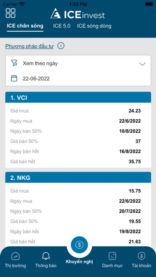 2. Được thông báo khi Thị trường xác nhận Chân một con sóng để Nhà đầu tư có thể Mua với tỷ trọng cao nhất tại chân sóng theo danh mục Chân sóng là các mã Cổ phiếu được Robot ICE chân sóng lựa chọn theo công nghệ AI là những mã khoẻ hơn thị trường chung và có khả năng hồi phục tốt nhất, và sẽ khuyến nghị Bán ra dần theo chiều tăng của Sóng theo Phương pháp đầu tư tại Chân sóng.