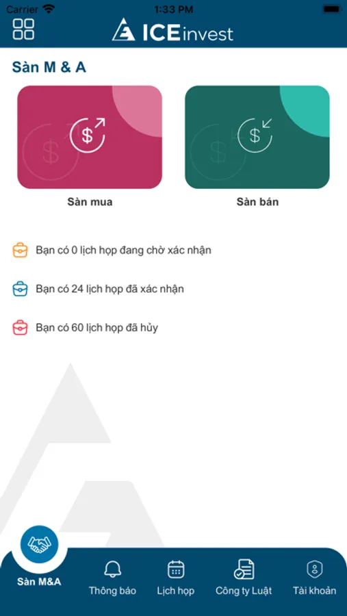 ICEinvest bao gồm hai tính năng chính là Sàn M&A cùng với Tư vấn chứng khoán: