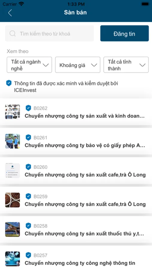 Sàn M&A là nơi cung cấp các thông tin nhu cầu Mua/Bán Doanh nghiệp/ Công ty/ Dự án . Quý vị có thể Đăng tin Nhu cầu Mua/ Bán Doanh nghiệp để hiển thị các thông tin lên Ứng dụng giúp cho các Khách hàng sử dụng ICEinvest có thể tìm kiếm được. Khác với Website của ICE, điểm đặc biệt của Ứng dụng ICEinvest là Các khách hàng có thể kết nối với nhau qua hình thức “Đặt lịch họp trực tuyến (online)” hoàn toàn tự động bằng công nghệ lần đầu tiên xuất hiện tại Việt Nam. Khi Nhà đầu tư tìm được các thông tin Bán Công ty/ Dự án phù hợp và muốn kết nối với Chủ doanh nghiệp/ Chủ đầu tư chỉ cần chọn “Đặt lịch họp”, ICEinvest sẽ tự động sắp xếp lịch họp cho hai bên qua ứng dụng Zoom meeting và gửi link cuộc họp cùng ngày giờ họp cho Hai bên qua ứng dụng hoàn toàn tự động. Và điểm khác biệt nữa là ngoài Hai bên Mua và Bán họp sẽ có sự tham gia của các Đợn vị tư vấn, các công ty Luật hàng đầu trong danh sách Công ty Luật trên ứng dụng ICEinvest nếu được khách hàng lựa chọn tham gia họp cùng. Khi đó Link cuộc họp cũng đồng thời được gửi cho Công ty Luật được chọn để tham gia họp cùng hỗ trợ hai bên.