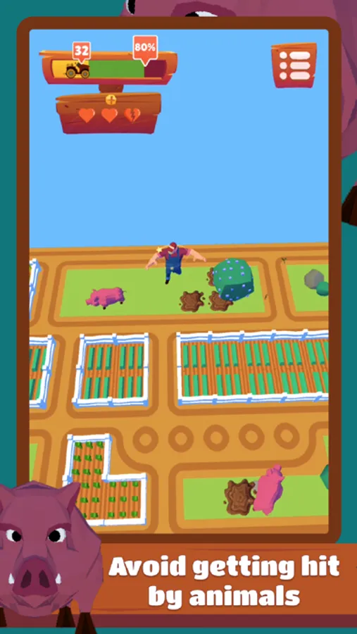 control your farmer, guide him by swiping up and down, left and right your screen or turn