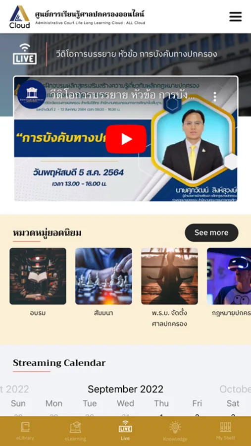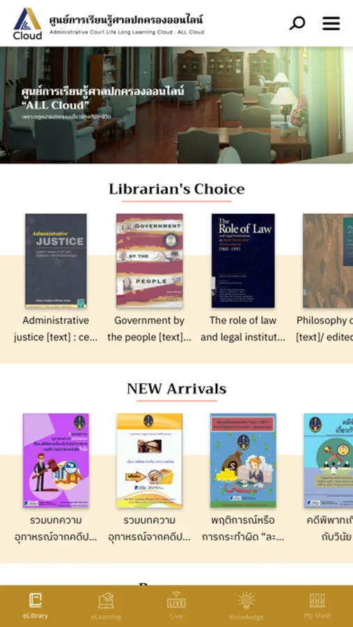 สำนักงานศาลปกครองได้พัฒนาระบบ ALL Cloud ศูนย์การเรียนรู้ศาลปกครองออนไลน์ โดยมีวัตถุประสงค์เพื่อให้เจ้าหน้าที่ของรัฐและประชาชน เข้ามาศึกษาเรียนรู้คดีปกครอง ซึ่งสามารถนำไปพัฒนาตนเอง องค์กร และในชีวิตประจำวัน โดยมีองค์ประกอบ ได้แก่ การเรียนออนไลน์ การถ่ายทอดสด สื่อการเรียนรู้ ค้นรายการหนังสือ หนังสืออิเล็กทรอนิกส์ บริการผ่านแอปพลิเคชัน ALL Cloud และเว็บไซต์ https://allcloud.admincourt.go.th