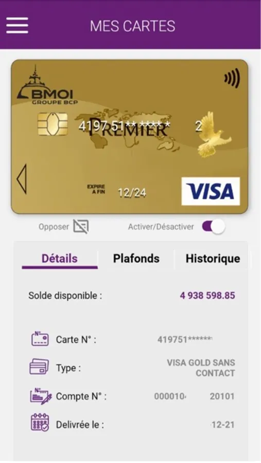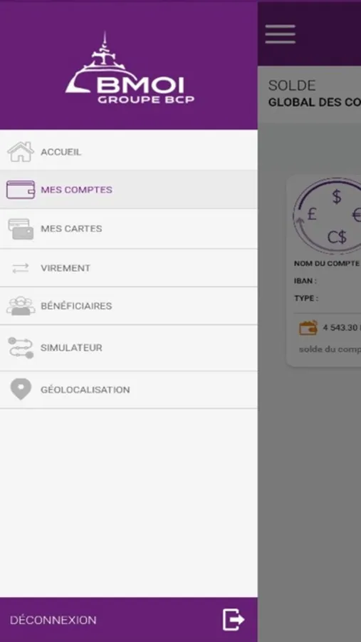 • La consultation de la liste de vos comptes bancaires à la BMOI