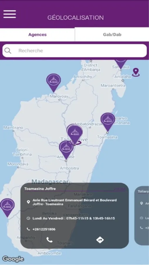 • La géolocalisation des agences et des distributeurs automatiques de billets (GAB) de la BMOI