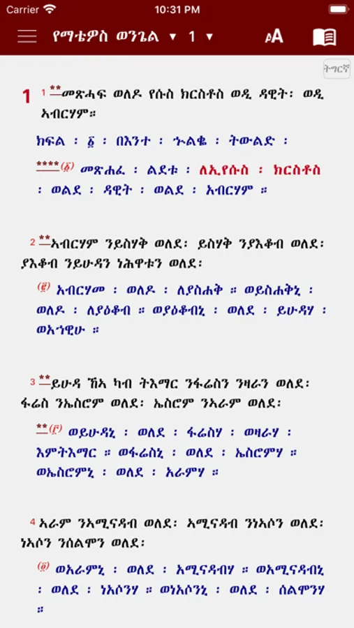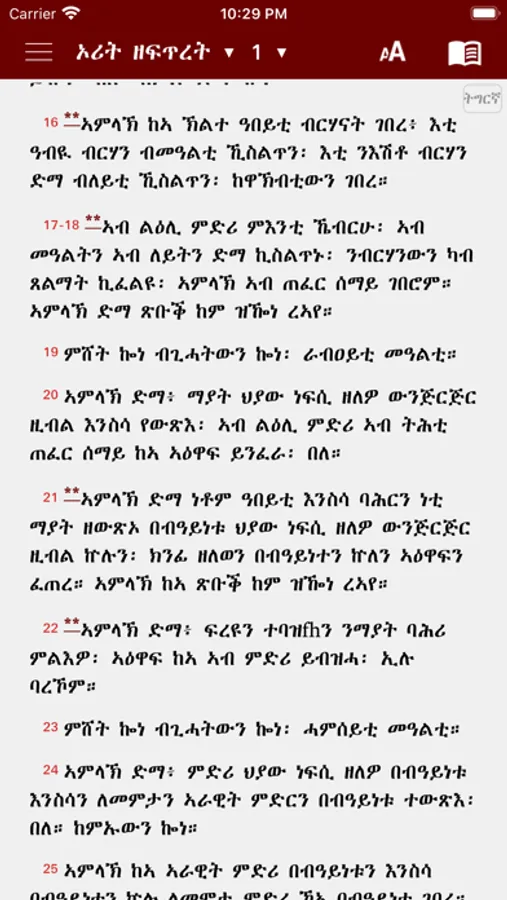 Geez Tigrigna Bible is a simple and convenient bible, with easy navigation between Bible verses. It is offline study bible which is a good choice for studying bible, it allows you to quickly jump to the exact Bible verse in all three translations (Geez, Amharic and English),