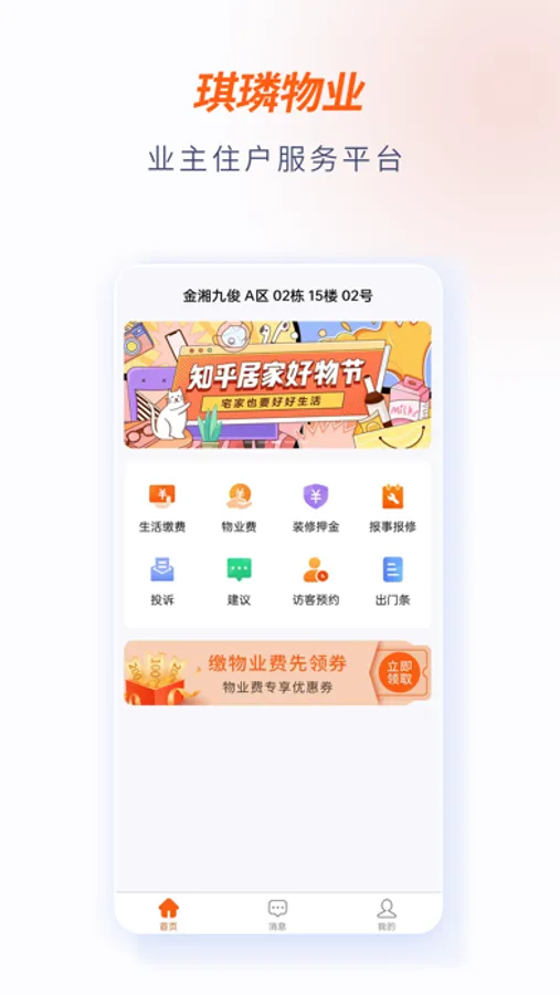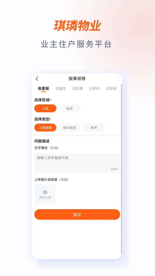 琪璘物业APP为曲靖市琪璘物业服务有限公司开发的业主使用软件,业主登录APP后可查看自己房屋物业费缴费情况,可进行缴费,可以提交报事报修工单,查看工单处理进度,可添加家庭成员和租客成员信息,添加完成后,家庭成员或租客可用手机号登录业主端系统。