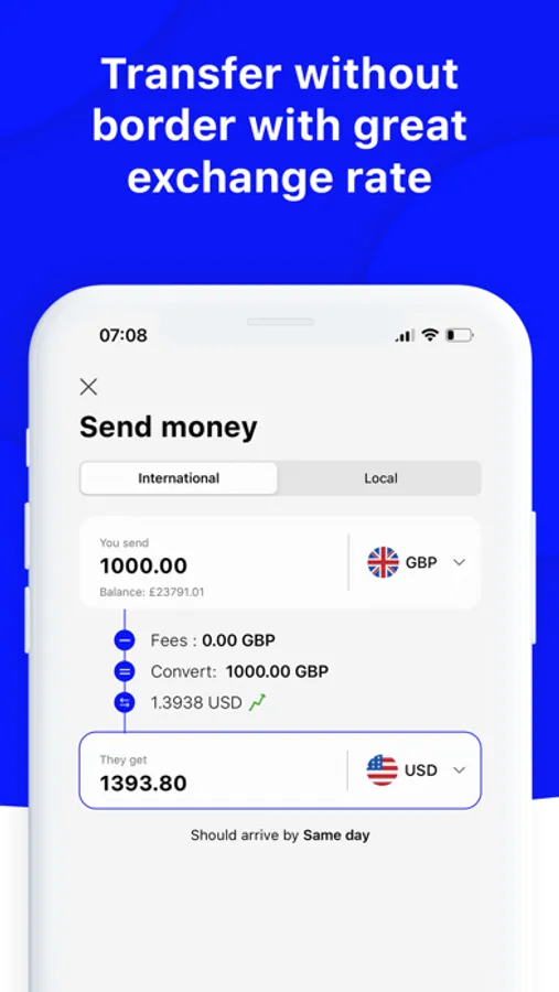 The Nexdi app is simple, fast, and secure, allowing you to send money to over 130+ countries in 38 major currencies around the world. You can send, receive, and convert with live exchange rate at any time, all from one account.