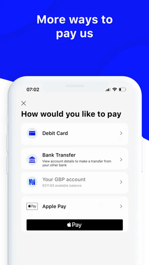You have a choice to pay us via Debit Card, Bank Transfer, Apple Pay and G Pay. The app has a Bank-level security for your complete peace of mind combining with the best friendly user experience.