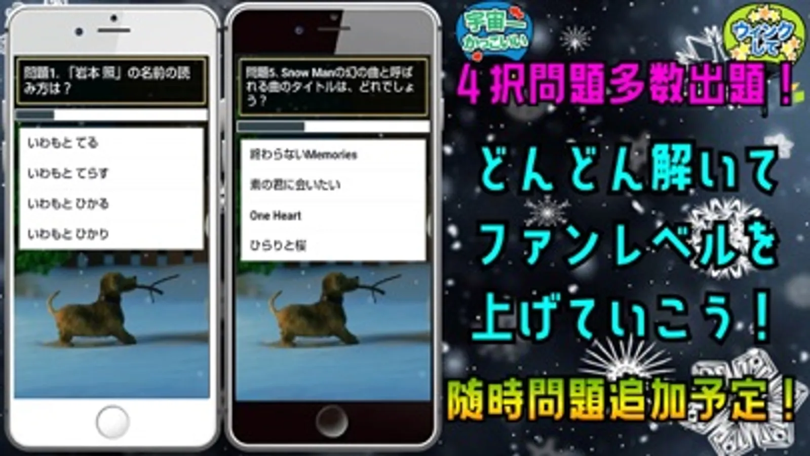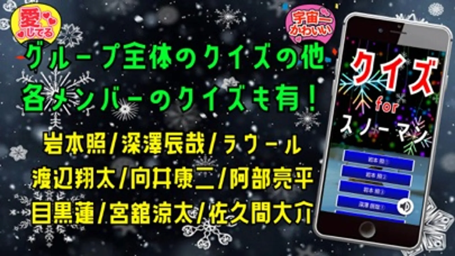 ジャニーズの人気男性アイドルグループ 「スノーマン(snowman)」に関するクイズアプリです。