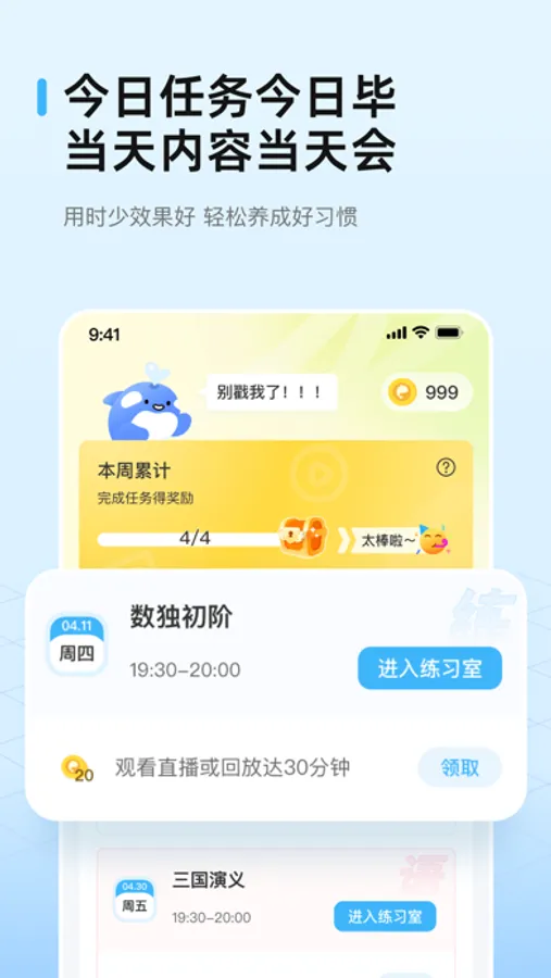 鲸准练是可以免费帮助学生获得更多课外练习题。“鲸准练” 鼓励学生适当走出自己的舒适圈,保持足够的练习强度。这对学生的情感、动机、元认知、方法意识和习惯等的培养具有重要价值,同时又能提高作业和学习的效率效果。