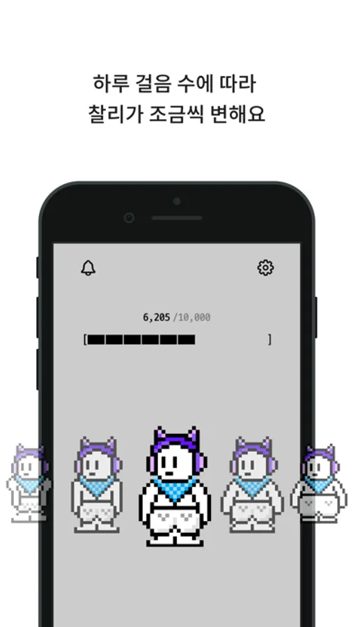 - 하루 걸음 수에 따라 찰리의 체형이 변해요!