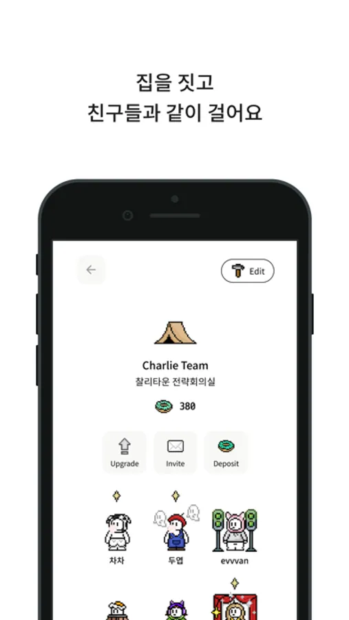 - 집을 짓고 하우스메이트들과 같이 걸어요.