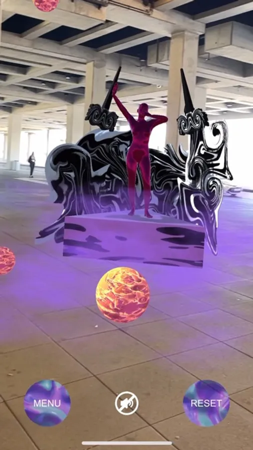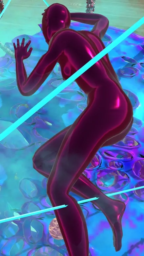 AR-video installation “Dreaming Is the Mind Left to Itself” leads the viewer through an abstract, animated landscape reminiscent of biological neural networks and dreamlike environments. Underlined by spherical sounds and voiceovers, the artist deals with human consciousness and perception within the digital sphere. She creates an experience of parallel realities and guides the viewers back to their own state of consciousness, highlighting the blurring boundaries between both spheres.