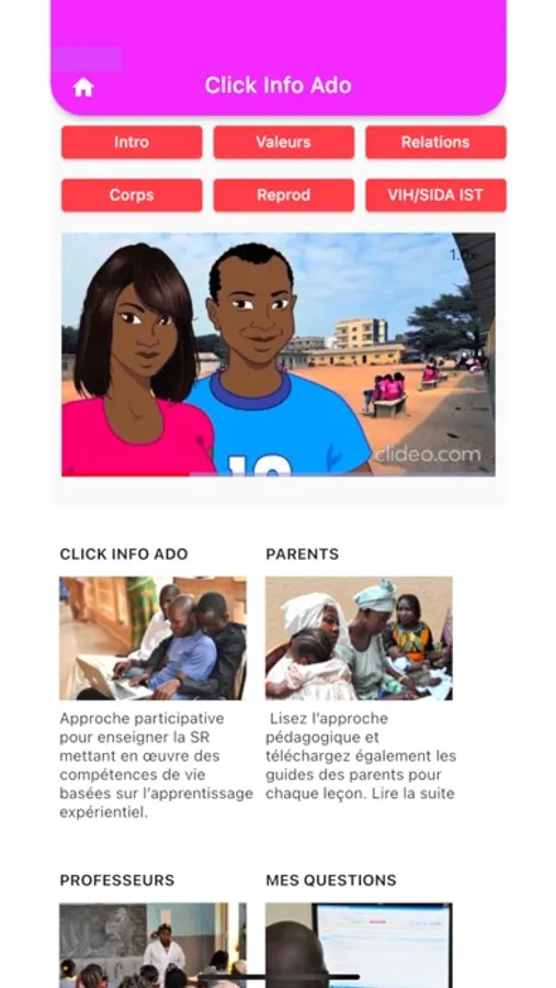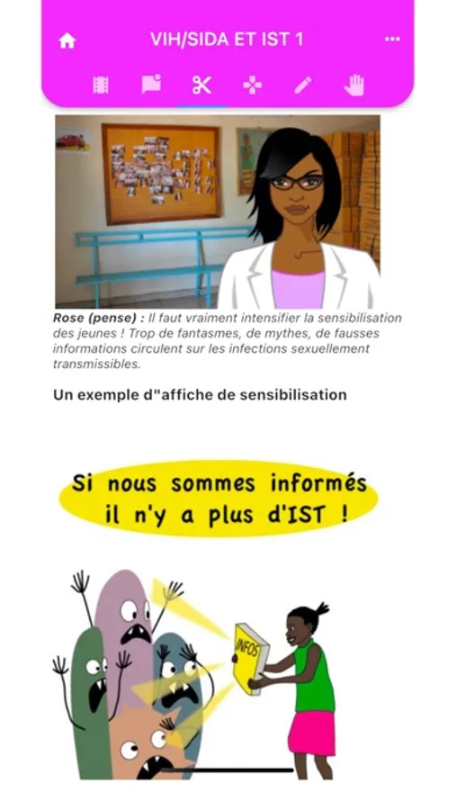 · consulter la plateforme eLearning en version off line avec la possibilité d’accéder à toutes les rubriques en menu déroulant ainsi que les différentes parties de chaque thématique développée à savoir : Episode, Discussion, Création, Jeu, A retenir, engagement.