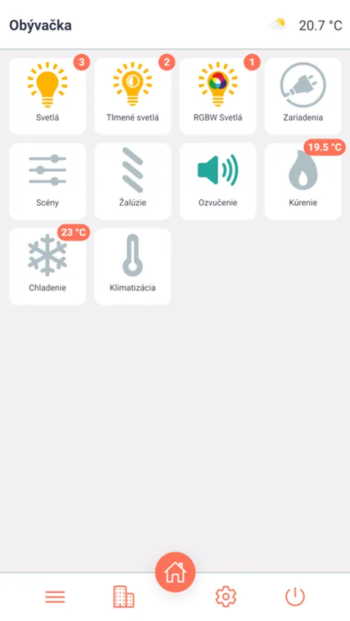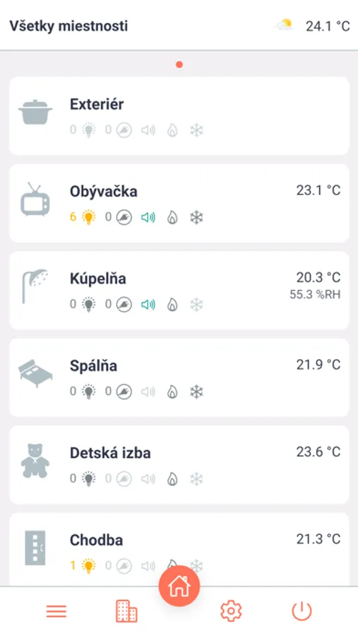 Scény - Jednoduché nastavenie a ovládanie vybraných preddefinovaných scén v miestnostiach a v celom objekte.