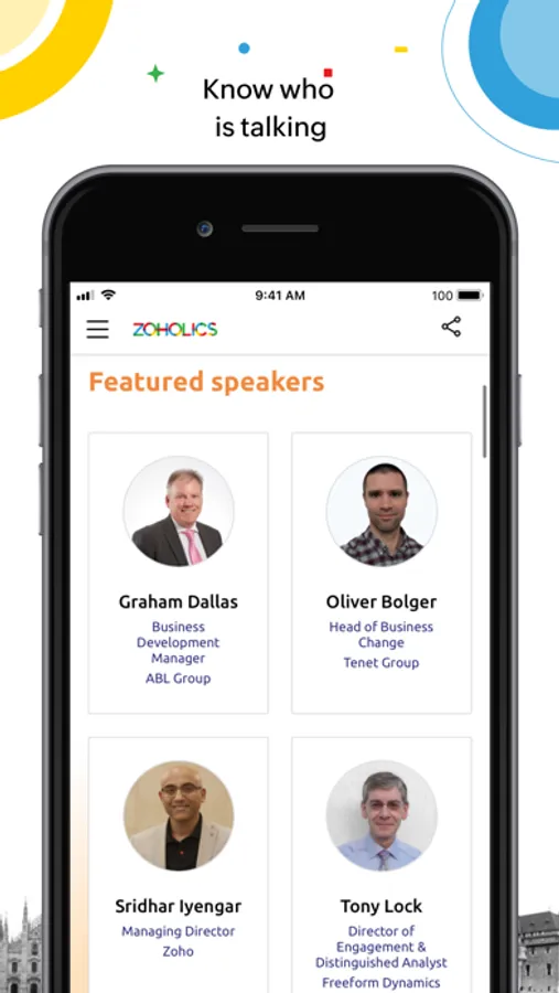 The Zoholics mobile app gives attendees a digital experience to remember. Get event information and have real-time interaction with speakers from your mobile device.